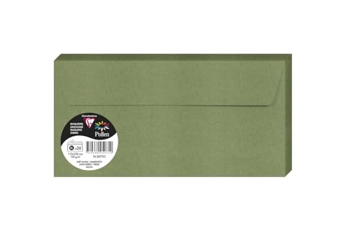 Clairefontaine 5075C - ett paket med 20 självhäftande kuvert - DL-format 11 x 22 cm - 120 g/m² - salviagrön färg - inbjudningsevenemang och korrespondens - pollensortiment - premiumpapper slät