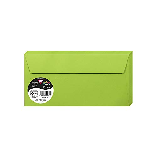Clairefontaine – Ref 5545C – Pollen, självhäftande kuvert (paket med 20) – DL-storlek, 120 gsm papper, skrivarkompatibel, syrafri, självhäftande remsa för enkel tätning – intensivt grönt
