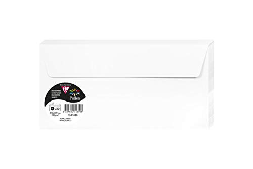 Clairefontaine – Ref 5435C – Pollen, självhäftande kuvert (paket med 20) – DL-storlek, 120 gsm papper, skrivarkompatibel, syrafri, självhäftande remsa för enkel tätning – vit