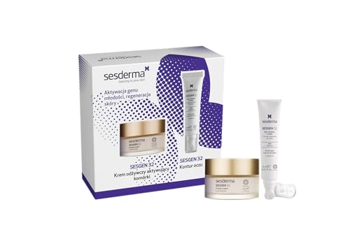 Sesderma SESGEN 32 presentset – cellaktiverande anti-aging ansiktskräm 50 ml ögonkräm 15 ml – med teprenon, hyaluronsyra och DMAE – regenererande vård för strålande hud