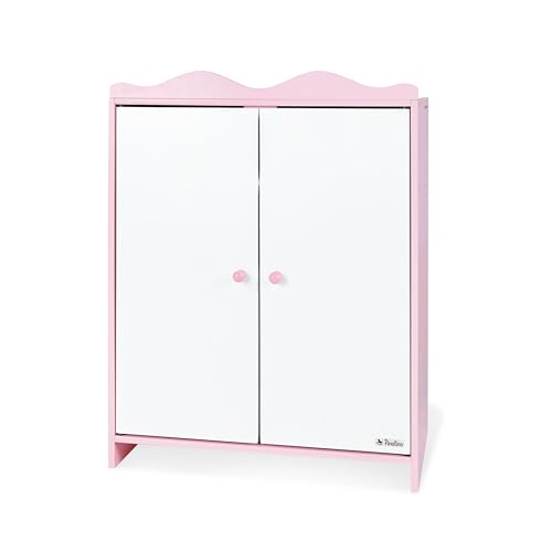 PINOLINO Dockgarderob 'Jasmin', av trä, med 1 hyllplan, 1 klädstång och 3 klädhängare, dockmöbler för flickor från 2 år, rosa/vit