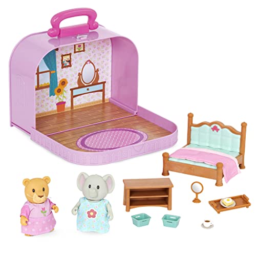 Li'l Woodzeez – Lil Woodzeez – bärbart dockhus lekset – sovrum och minimöbler – djurfigurer – barn ålder 3+, resväska sovrum lekset – deluxe