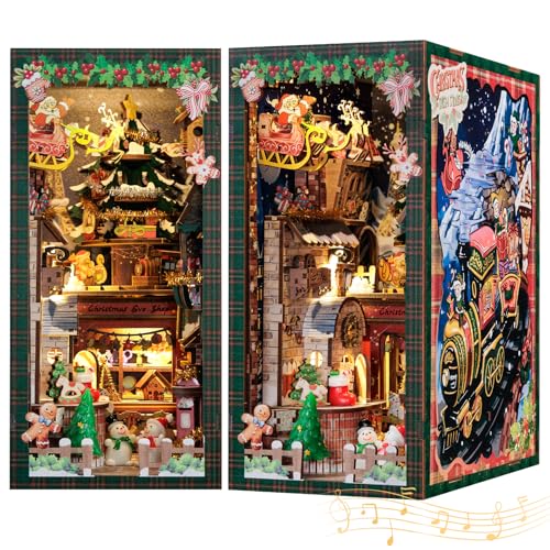 CUTEBEE Book Nook Kit – DIY dockhus, Julklappsöverraskning,miniatyr hus själv bygga för vuxna med LED-belysning, 3D bokstöd,kreativt set för bokhylla dekoration,present (Christmas Wish Store)