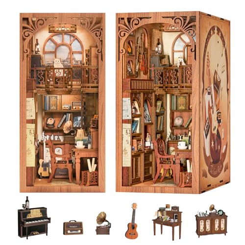 CUTEBEE Book Nook – Dockhus-kit för vuxna, DIY-miniatyrhus med LED-belysning och dammskydd, dekoration för hemmet och bokhyllan, presenter till familj och vänner (Rythme Secret)