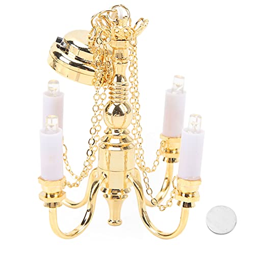 Dockhus Ljuskrona 1/12 Skala Miniatyr Taklampa med 4 Huvuden, Utsökt och Vintage Design för Dockhus Dekoration