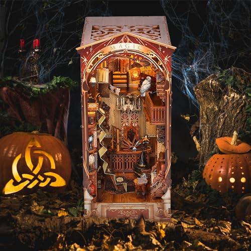 Harupink Book Nook kit, gör-det-själv dockhus i 3D-träpussel, Nook bok, byggsats med LED-belysning, kreativ presentdekoration för vuxna från 14+, kreativt gör-det-själv-bokhylla-dekorativt set (magisk