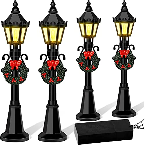 KENANLAN Dockhus golvlampa, 4 st mini julmodeller dockhus gatuljus miniatyrby bana lykta post för gör-det-själv mikrolandskap fe trädgård (A)