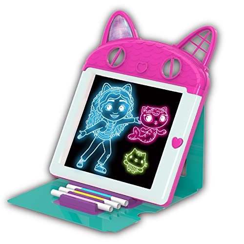 Cefa Toys - Premium lysande tavla med färgglada lampor Gabys dockhus, magisk tavla med lysande surfplatta, 3 dubbelsidiga markörer, lämplig för barn från 5 år