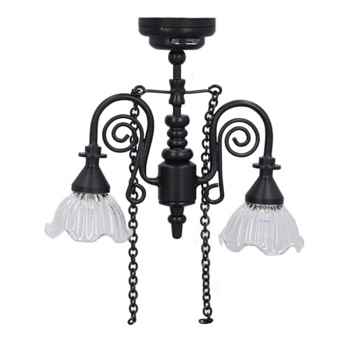 Dockhuslampa i Miniatyr, Skala 1:12 Dockhus LED Miniatyr Taklampa, Miniatyr Ljuskrona Lampa Dockhus Taklampa Hängande Lampa, Dockhus Möbler, Dockhus Dekor (Svart)