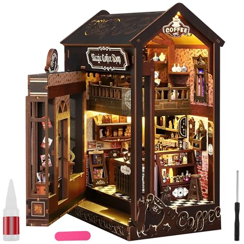 CUTEBEE Book Nook Kit – DIY dockhus,Kafé i retrostil,miniatyr hus själv bygga för vuxna med LED-ljus, En unik gåva till familj och vänner (Corner Coffee Shop)
