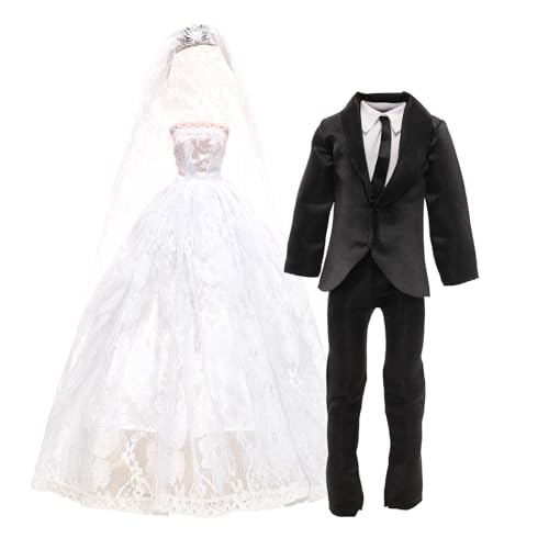 Miunana Dockor, formell kostym, brudklänning, kläder, bröllop, dockkläder, brudklänning med brudslöja, skor för 30 cm dockor