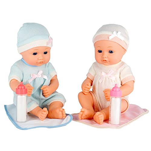 Dream Collection Babydockor tvillingar med docktillbehör – babydockor – mjuk kropp av solid venyl – dockkläder, napp och mjölkflaska – 30 cm – docka från 2 år