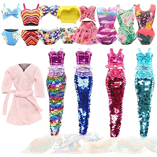 Miunana 10 dockkläder dockor kläder 5 baddräkt bikini 4 sjöjungfru simkläder 1 badrock för 30 cm dockor