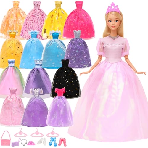 Miunana 15 dockkläder dockor festklänningar aftonklänningar kläder docktillbehör skor kronor handväska halsband klädhängare för 30 cm dockor