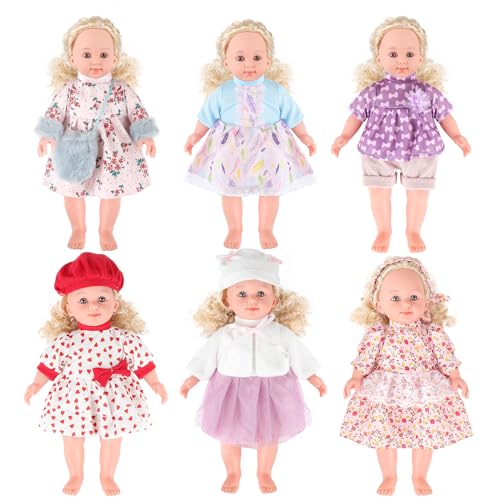 deAO dockkläder 30 cm, 6-pack dockkläder för dockor 33 cm 36 cm med blus byxor klänning och hatt, rollspelsleksak för barn (6 söt outfit, ingen docka)