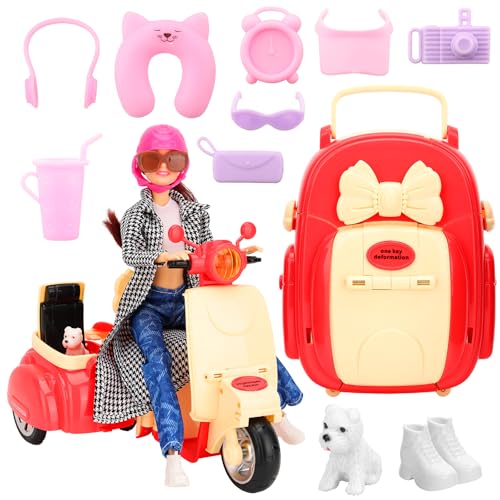 Miunana 15 st docka och skoter skoter resväska omvandlingsset motorcykel resa lekset med husdjur dockkläder kläder tillbehör för 30 cm dockor presenter för flickor