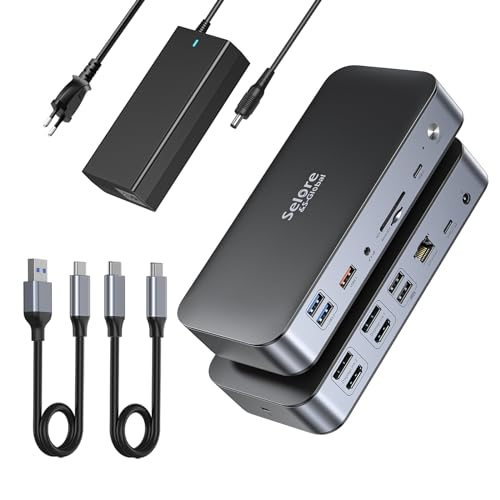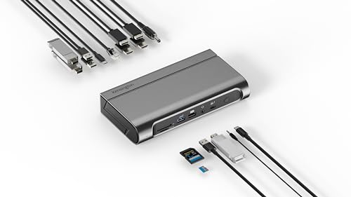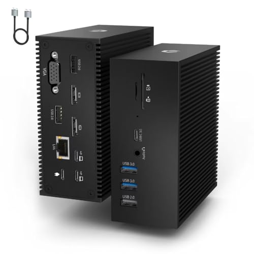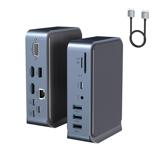 YLSCI 12-i-1 USB C dockningsstation, dockningsstation, trippel skärm med 2 x 4K HDMI, VGA, Ethernet, 100 W PD, USB 3.0, 4 x USBA, SD/TF. Ett måste för USB-C-bärbar dator och smartphone