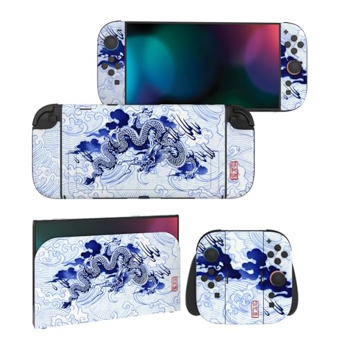 PlayVital Klistermärken för Nintendo Switch 2 Kontroll & Grip & Dockningsstation,Dekorativa Skyddsstickers för Switch 2 Tillbehör-Qinghua-Porslinsstil