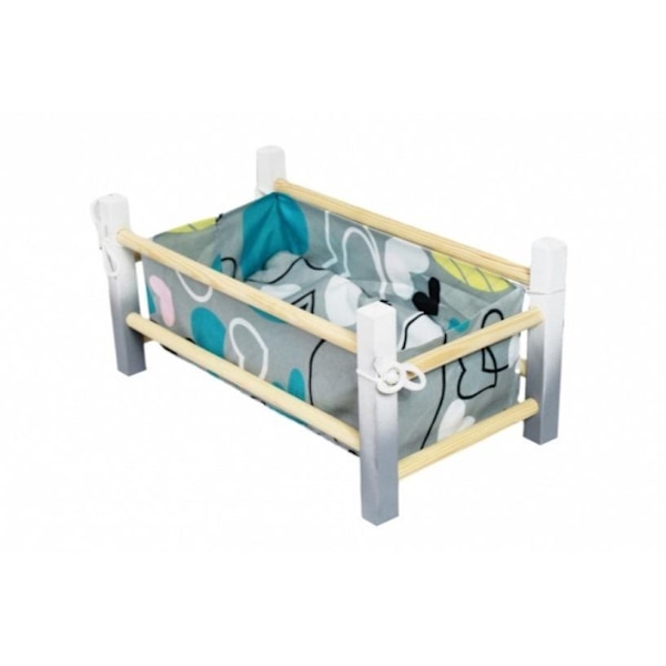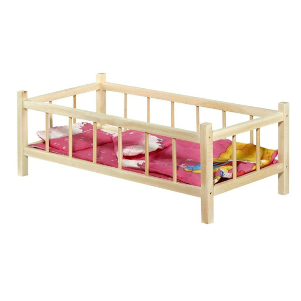 Liten fot 9601 Docksäng av trä, dockmöbeltillbehör, kudde och filt i hjärtdesign, från 3 år