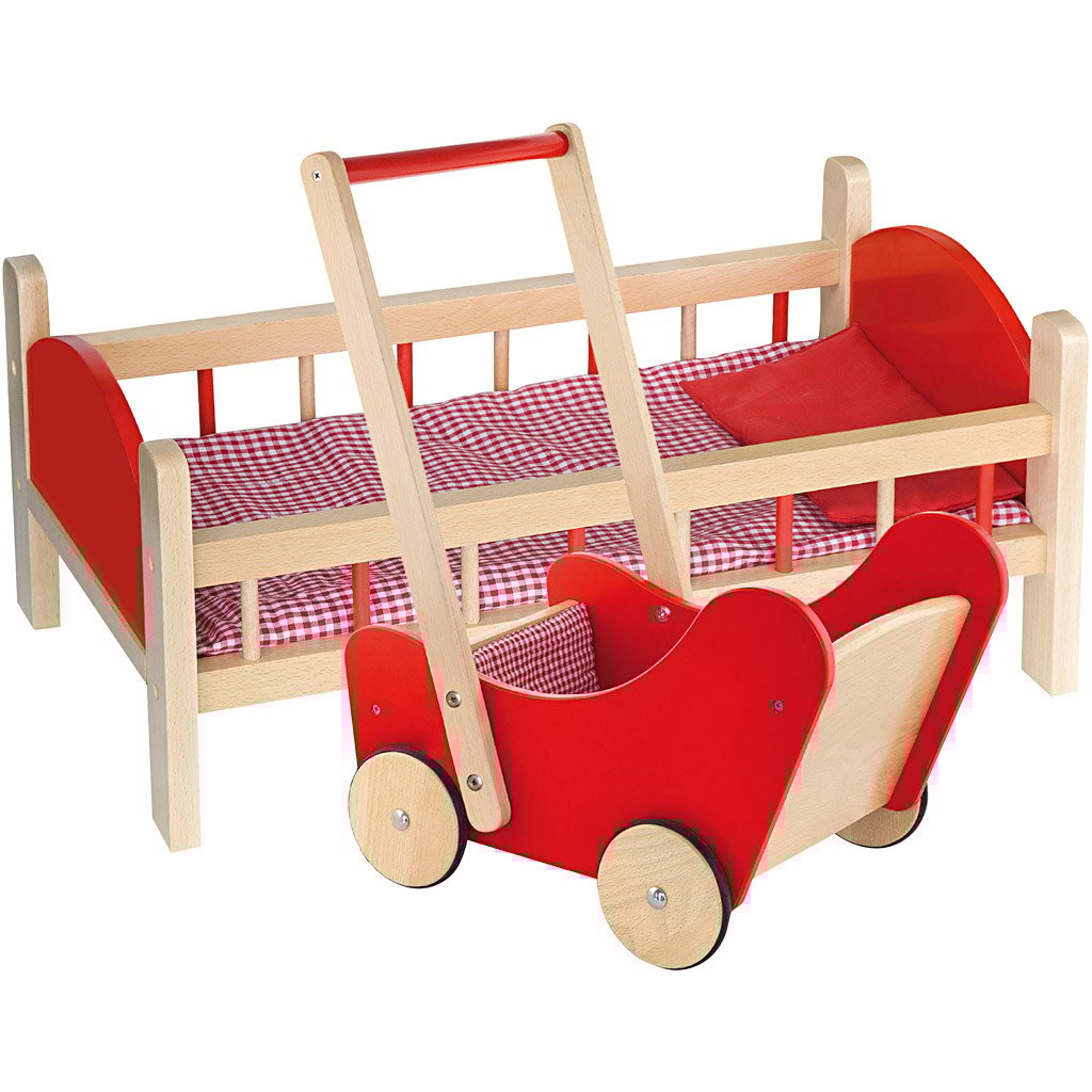 VIGA docksäng och dockvagn, röd, 2 delar/ 1 set
