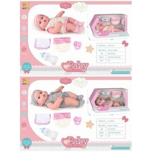 deAO ”My First Baby Doll” 15-delars dockset med miniatyrsäng, sängmobil, barnstol, matningstillbehör och docka ingår