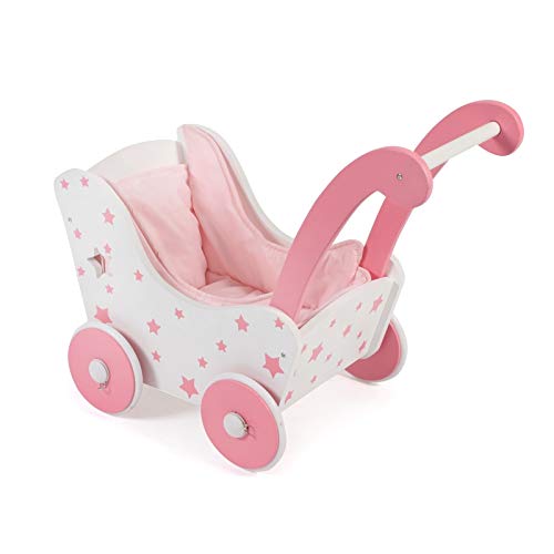 Trädockvagn för babydockor upp till 54 cm, dockvagn av trä, skjuthöjd 43 cm