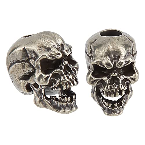 SUPerfINDINGS 2 st dödskalle svärd snodd EDC-berlock mässing silver antik hål: 5,5 mm paracord sladd armband tillbehör