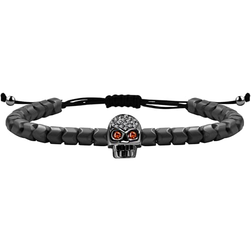 Tobestu Punk gotisk dödskalle armband för män kvinnor | halloween skelett huvudarmband | natursten pärlstav handgjort flätat armband justerbart, Adjustable, Rostfritt stål, Cubic Zirconia