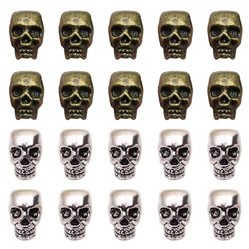 HAOBIN 20 stycken dödskallepärlor dödskallepärlor dödskallepärlor retro dödskallepärlor dödskallepärlor dödskallepärlor dödskalle distanspärlor för DIY-tillbehör armband halsband smycken
