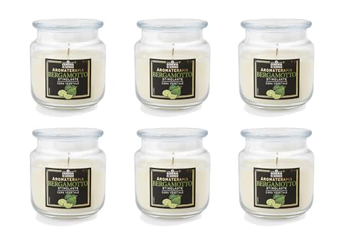 6-pack doftljus i medium jiara, 100% vegetabiliskt vax, vegansk, upp till 80 timmars livslängd - aromaterapi - Bergamott - stimulerande - Made in Italy - Cereria Di Giorgio