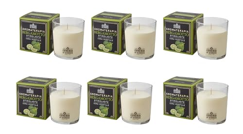 6-pack doftljus i växtvax - Made in Italy - Aromaterapi - Bergamott - Stimulerande - 44 timmars varaktighet - Cereria Di Giorgio