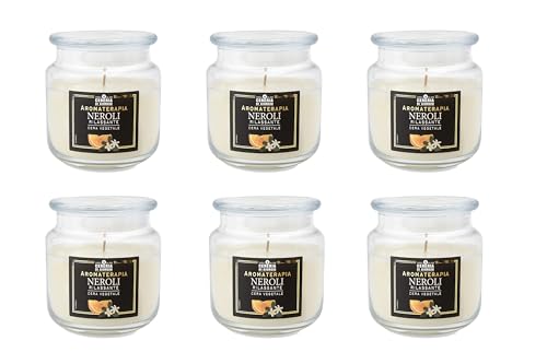 6-pack doftljus i medium jiara, 100% vegetabiliskt vax, vegansk, upp till 80 timmars livslängd - aromaterapi - Neroli - Avkopplande - Tillverkad i Italien - Cereria Di Giorgio
