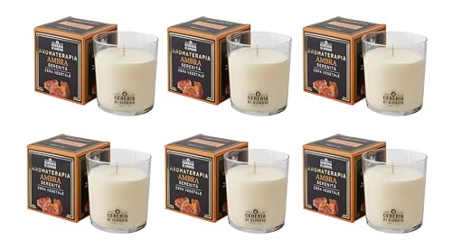 6-pack doftljus i medium jiara, 100% vegetabiliskt vax, vegansk, upp till 80 timmars livslängd - aromaterapi - bärnsten - lugn - Made in Italy - Cereria Di Giorgio