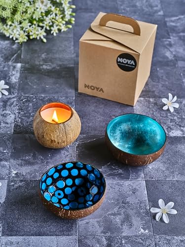 Noya Set med 2 skålar i olika färger + 1 doftljus, Coconut
