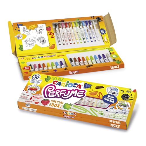 Carioca Specialuppsättning doftpennor | Innehåller 30 doftande markörer med färgklistermärken | Blandade färger | Tvättbart bläck och blockerad spets