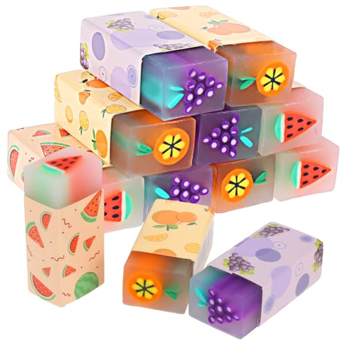 Abeillo 12 st söta suddgummin för barn, roliga fruktformade suddgummin doftpennor gummi suddgummi klassrum studenter belöning skolmaterial pris gåvor festgåvor