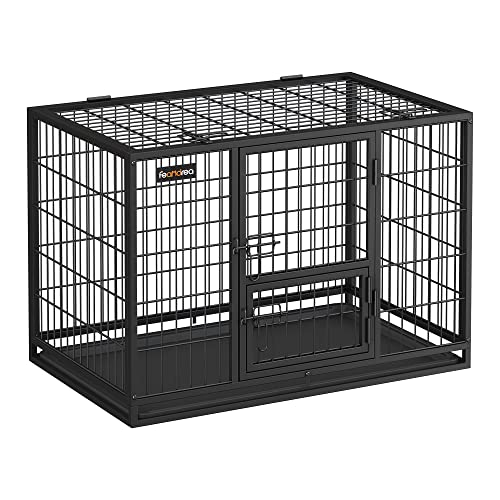 Feandrea Heavy Duty Dog Cage Mesh Box Portabel husdjursbur 92,5 x 57,5 x 64 cm för små medelstora hundar Säker 2 avtagbara dörrar Puppy Run L Svart PPD002B01