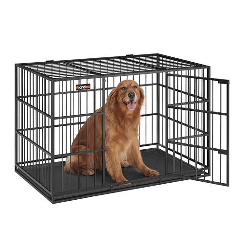 Feandrea Heavy-Duty Dog Cage, 122 x 75 x 80 cm, for Large Dogs, with Removable Bottom Tray, Double Doors, Easy to Clean, Pet Cage, Ink Black PPD006B01