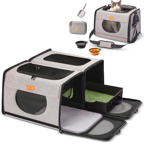 IC ICREATE.X Large Cat Carrier with Litter Box for Car Travel, Pet Carrier Bag 2-in-1,Double Cat Travel Transport Carrier for Long Distance, Collapsible Dog Crate, Cat Bag for Kitten 2 Cats