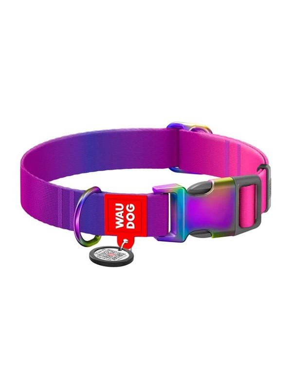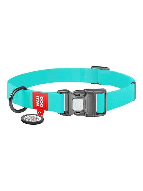 Waudog Waterproof glowing dog collar with QR passport 40 mm wide 46-70 cm long
