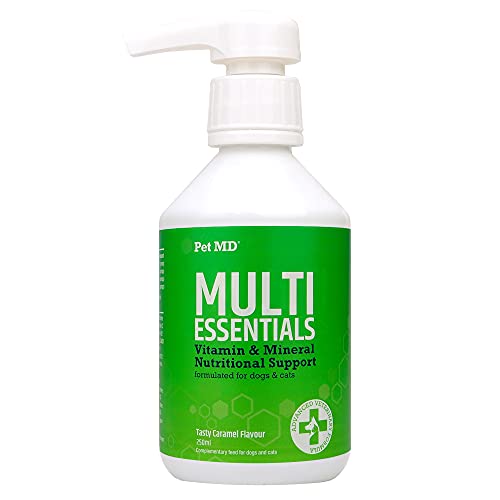Pet MD Multi Essentials Komplett multivitamin för hundar och katter - Vitamin B för hundar - Kattvitaminer - Hund multivitamin - Kalciumtillskott - Vitaminer för äldre hundar och valpar - 250 ml