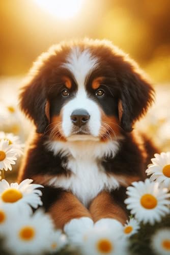 Bernese Mountain Dog Puppy in a field of colorful flowers Notebook - Large 6 x 9 inches - 127 Pages