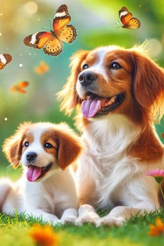 Whimsical Dog Notebook – Large 8x11” Journal with Lined Pages, Oil Painting Illustration, Cute Puppy Sketchbook for Writing, Drawing, or Gifts