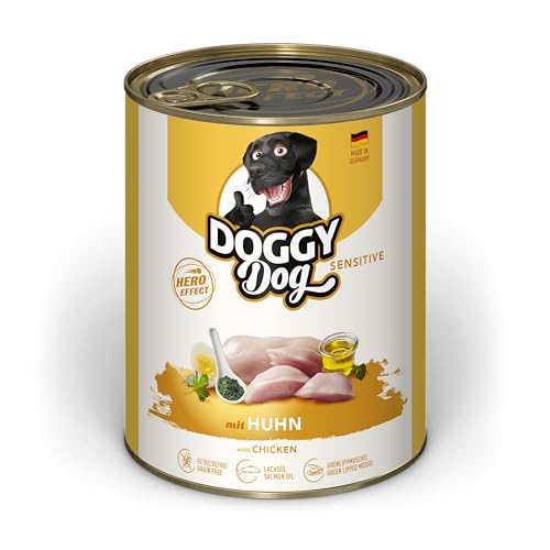 Doggy Dog Paté kyckling Sensitive, 6 x 800 g, våtfoder för hundar, spannmålsfritt hundfoder med laxolja och grönläppskal, särskilt väl tolererat helfoder, tillverkad i Tyskland
