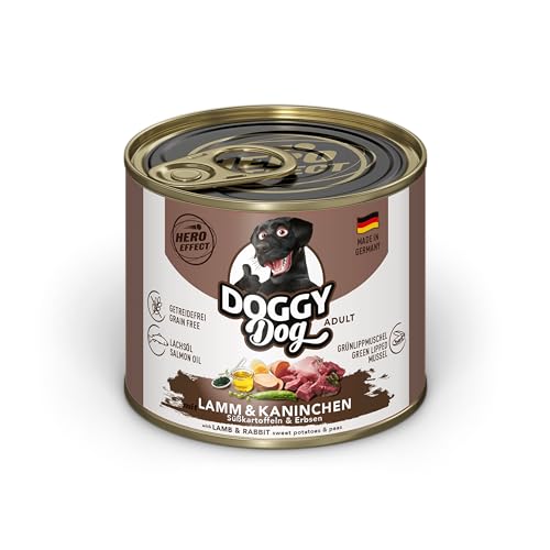 DOGGY Dog Paté lamm & kanin, 6 x 800 g, våtfoder för hundar, spannmålsfritt hundfoder med laxolja och grönläppskal, komplett mat med sötpotatis och ärtor, tillverkad i Tyskland