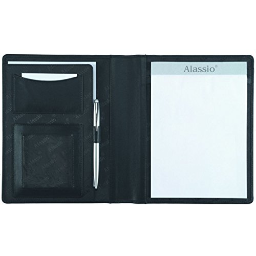 Alassio 43004 – skrivmapp A5 Bormio av läderimitation, dokumentmapp svart, konferensmapp ca 23 x 18 x 2 cm, mapp för A5-dokument, med block och A5-fack