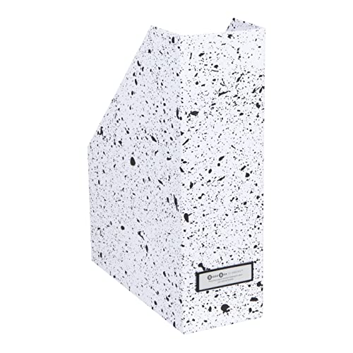 Bigso Box of Sweden VIKTORIA stående samlare med etikettetikett – tidskriftssamlare av fiberskiva och papper – stående mapp för dokument, dokument eller tidskrifter – svart spräcklig