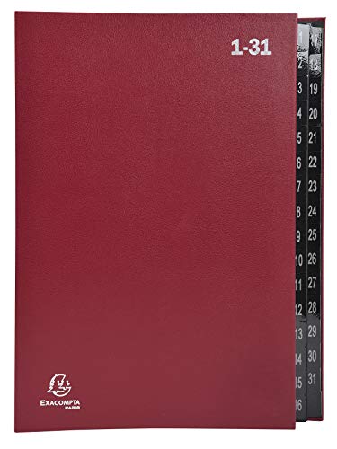 Exacompta - Ref 57035E - Flerdelad mapp - storlek 250 x 330 mm, lämplig för A4-dokument, 270 gsm återvunnet kartong, expanderbar rygg, 32 sektioner (märkta 1-31) - Röd