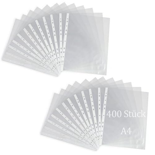 MUNGHOK 400 stycken broschyrfickor A4 glasklar, glasskydd DIN A4, genomskinliga fodral glasklar, transparent perforering broschyrfodral, genomskinliga fickor A4 med perforering för A4-mapp dokument