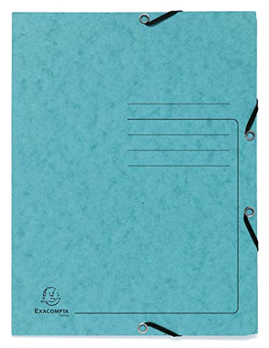 Exacompta - Ref 55422E - 1 tryckt elastisk mapp - 3-flikig ficka - 355 g/m2 glansig kartong - 24 x 32 cm för A4-dokument - turkos färg - arkiveringskapacitet: 250 ark med en vikt på ca 80 g